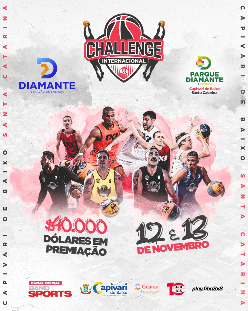 O Challenge Internacional V de Basquete 3x3 tem o patrocínio master da Diamante Geração de Energia e o apoio de Canal Oficial Band Sports, Prefeitura de Capivari de Baixo, Guarani + mais que açúcar, Anb3x3 e PlayFifa 3x3.