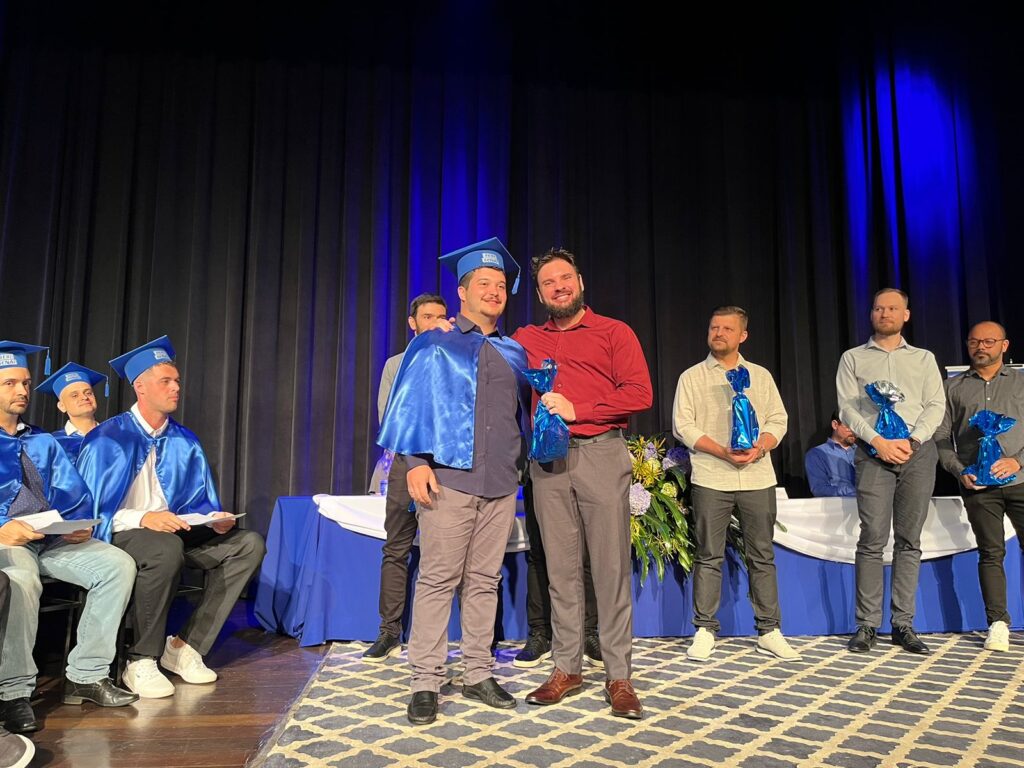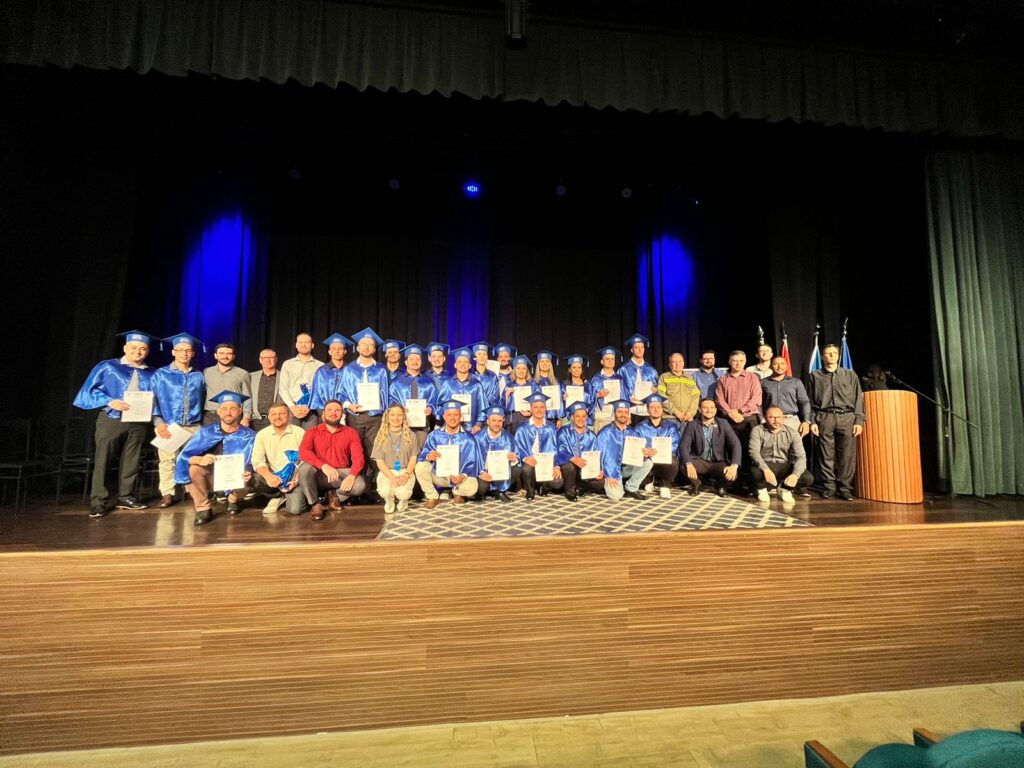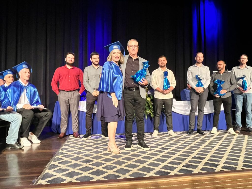 Único no estado, o curso coloca no mercado mão de obra especializada.Nesta terça-feira, 12, o SENAI e a Diamante Energia formaram mais 22 Operadores de Usina Termelétrica, entre eles, as primeiras três mulheres.A solenidade foi realizada no Parque Diamante +Energia e contou com a participação de vários gestores da empresa, entre eles, o presidente da Diamante Energia, Pedro Litsek; o coordenador do curso e gerente de usina, Marcelo Bzuneck; e da gerente de Gente & Gestão, Daiane Ferreira Machado. Pelo SESI/ SENAI, o gerente de operações REgional Sul e Litoral Sul, Valmir Cabral da Silva Neto; e a supervisora do SENAI de Capivari de Baixo, Jeniffer Souza.A noite foi marcada por muita emoção entre os formandos, familiares e professores, que ao longo do ano passaram por muitos desafios e aprendizados. O coordenador do curso, em seu discurso, falou sobre persistência e resiliência da turma, “é importante continuar a estudar e saber aonde se quer chegar”, disse Marcelo.Esta é segunda turma desta parceria. O SENAI oferece a estrutura laboratorial, visitas técnicas na Usina e o apoio pedagógico para docentes e discentes. A Diamante contribui com 50% do investimento e os alunos com o restante, Esta é segunda turma desta parceria. O SENAI oferece a estrutura laboratorial, visitas técnicas na Usina e o apoio pedagógico para docentes e discentes. A Diamante contribui com 50% do investimento e os alunos com o restante. Como forma de aprimorar o conhecimento da sala de aula, são disponibilizadas 15 vagas de estágio remunerado pela Diamante no Complexo Termelétrico Jorge Lacerda.A escassez de mão de obra tem se tornado um problema cada vez mais comum em vários setores da economia. Isso ocorre porque, em muitos casos, o número de pessoas empregadas não acompanha o crescimento da demanda por trabalho qualificado das organizações. No setor elétrico, isso não é diferente, pois os cargos exigem especialistas nas áreas. “Quem se prepara aqui em Jorge Lacerda consegue se adequar em qualquer outra usina. Em todos os locais que trabalhei, sempre foi uma dificuldade achar mão de obra prepara e competente. Por isso, a importância desse curso”, disse o presidente da Diamante, Pedro Litsek.Para o gerente de operações do SENAI, a Diamante tem trazido boas referências em relação aos alunos e qualidade de ensino. “O desafio é atualizar tecnologicamente essa formação e continuar fornecendo mão de obra qualificada e tão importante para o sul do estado”, explicou Valmir.Em 2024, o SENAI já prepara o edital para mais uma turma. Lembrando que para concorrer à vaga é necessário a formação técnica em Automação Industrial; Eletromecânica; Eletrotécnica; Mecânica; Eletrônica; Eletroeletrônica; ou em Processos de Geração de Energia Elétrica;
